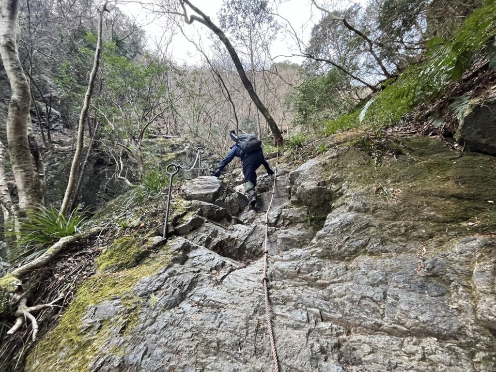 奥には鎖場