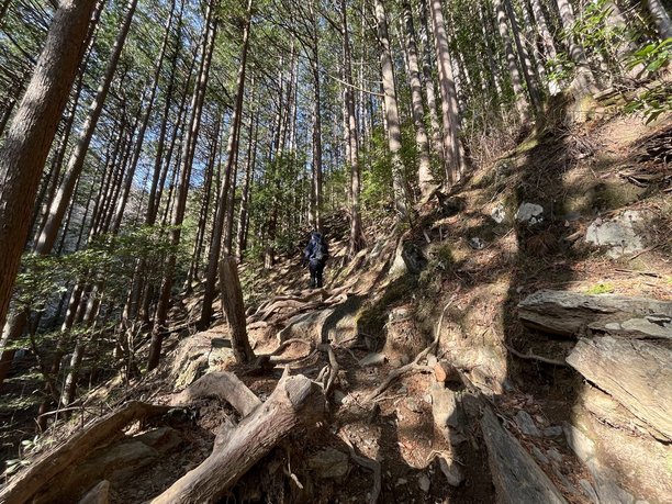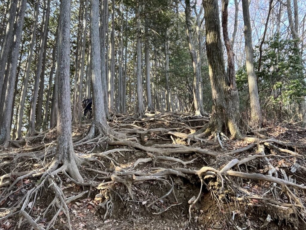 岩茸石を過ぎるとここからは根っことの闘いです。根っこ階段はあって助かることもありますが、細かく網の目のように張り巡らされた木の根っこは足の置き場を考えながら登らなければならず、思いのほか時間がかかりました。