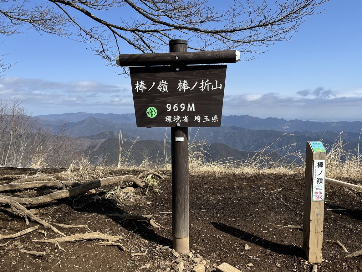 棒ノ嶺又は棒ノ折山は東京都西多摩郡奥多摩町と埼玉県飯能市との境にある標高969mの低山です。