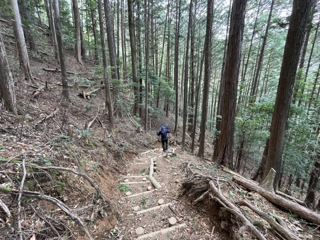 丸太階段もありますが、多くは土が流出していて階段として使えません。横を登って行きます。