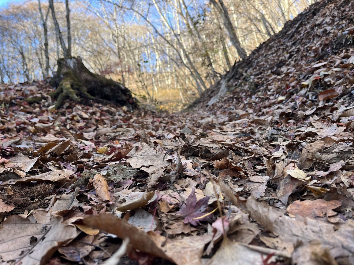 落ち葉が積もる中、カサカサと足音をたてながら静かな山を歩きました。