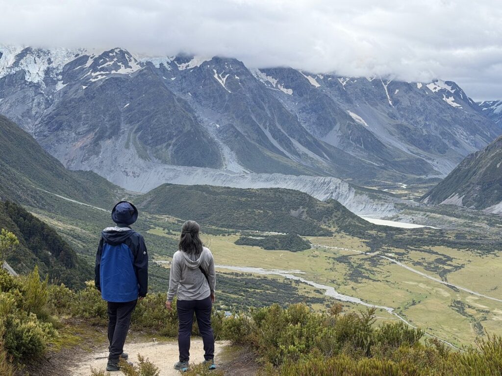 楽しみにしていたアオラキ/マウント・クック国立公園は雲に覆われていました。