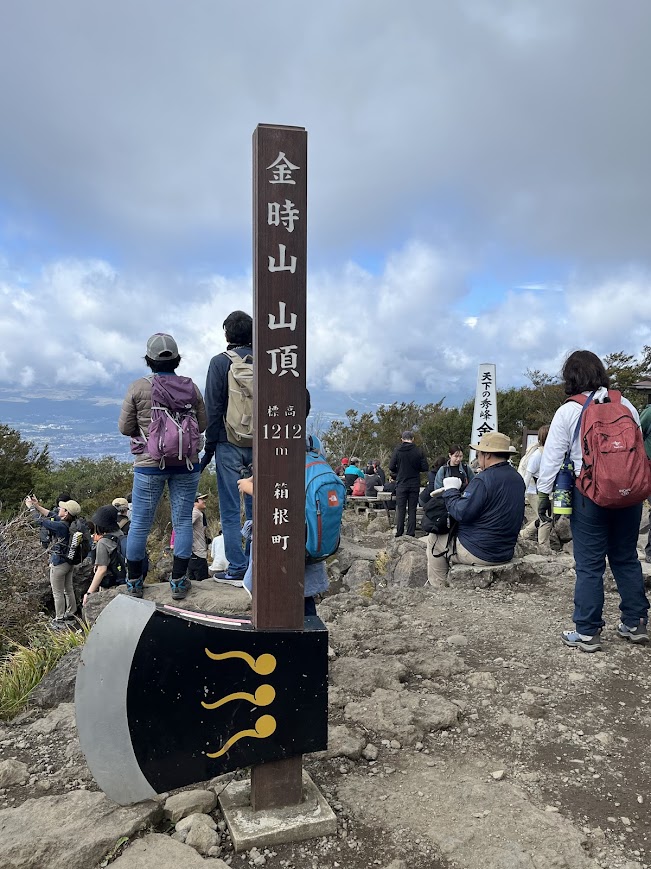 初めての金時山山頂は週末ということもあり多くの人で賑わっていました。2軒ある茶屋のそれぞれに鉞が飾ってあり、写真スポットになっています。