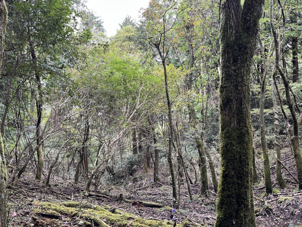 金時山から明神ヶ岳までは縦走する人も少なく、静かなハイキングになりました。広い尾根道も周りは高い笹に囲まれていたいり、低い笹では展望が開けていたり、森も美しい自然林から鬱蒼とした苔生す森まで、とてもバラエティーに富んだコースです。