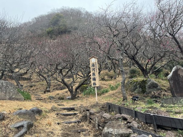 当日は湯河原梅林の梅まつり初日でした。しかし、湯河原駅に着くと同時に雨が降り始めました。思ったよりも早い降り出しでした。
