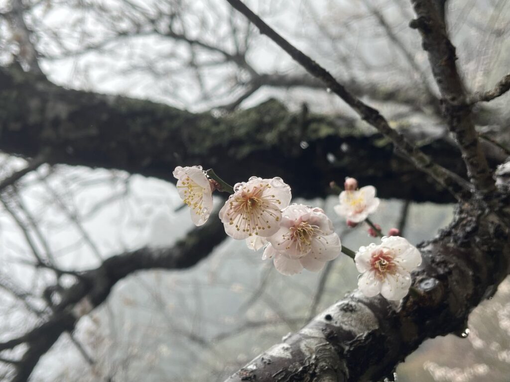 梅林まで下りてくると、雪もなく雨になっていました。ほんの少しの標高で随分違うものだと思いました。