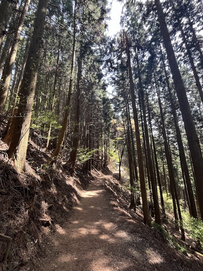 帰りは杉林をゆるゆると滝本駅まで下りてきました。