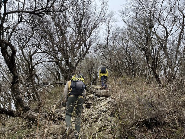 この先、樹林帯では風を避けることができましたが、登って汗をかいた後で吹きさらしの尾根に出ると一気に体温が下がるのを感じました。