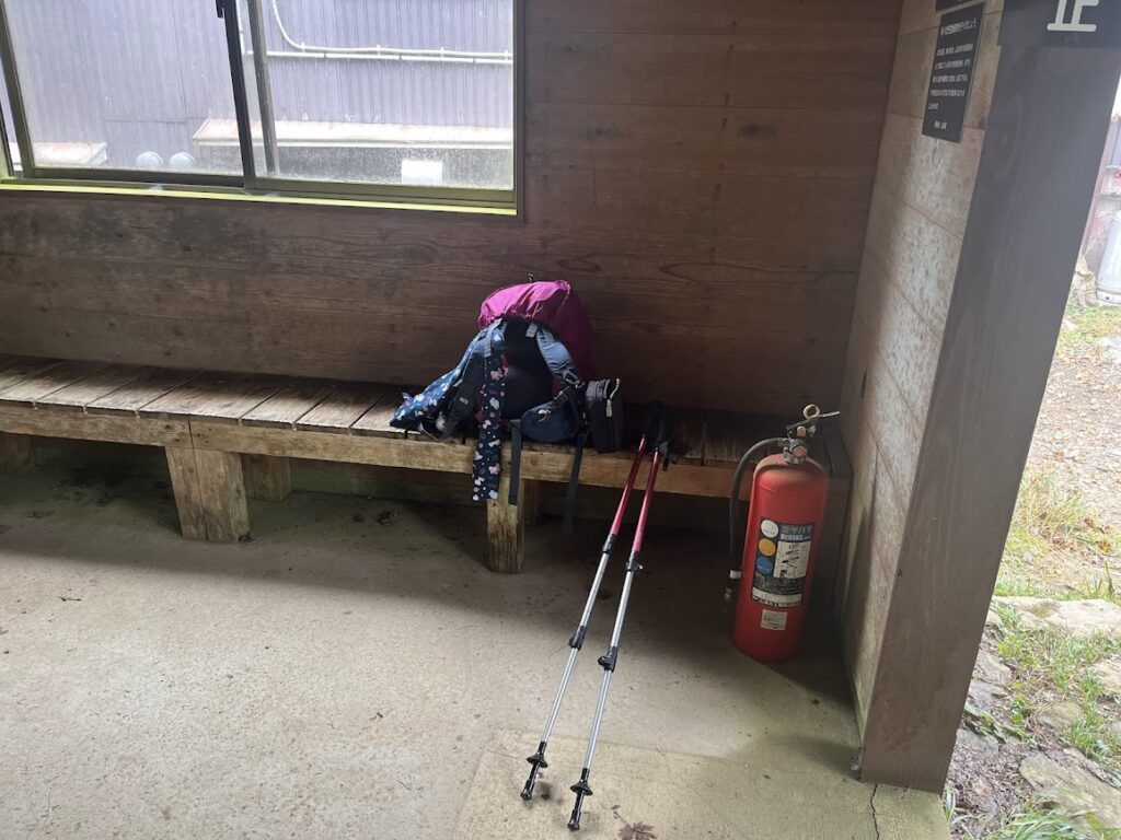 そして3回目は介山荘横の休憩所で残っていたお菓子とポットのお茶をいただき、ラストスパート前に一息いれました。トイレも使わせてもらいました。このような施設があるのは本当に助かります。