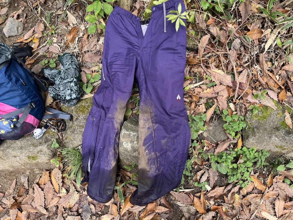 下山の頃にはレインパンツは見る影もなく濡れて、泥がはねていました。