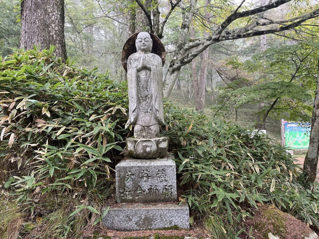 山に入るにつれてだんだんと雲が重くなります。霧雨になり、Tシャツが濡れだしたのでパーカータイプの雨具を着ました。